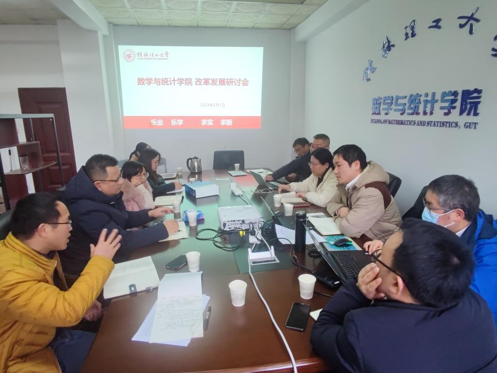 会上,蒋远营院长首先传达了学校党委三届七次全会精神和落实完成学校第三次党代会目标任务要求及学校2024年“解放思想、创新求变,加快推进高水平理工大学建设”处级领导干部专题培训班会议精神,聚焦学科专业建设、人才引进、人才培养等改革发展重要工作,进一步明晰学院改革发展方向,强调了学院改革发展的重要性和紧迫性,并对2024年学院重点工作任务进行了详细讲解和部署。蒋院长指出,制度建设是学院发展的重要保障,要进一步加强学院各项制度建设,充分发挥制度的激励和保障作用。会议就学院《桂林理工大学数学与统计学院绩效二次分配方案(征求意见稿)》《学科建设经费资助完成教学和科研成果限额标准(修订)》《数学与统计学院教职工年度考核评优方案(实行)》《数学与统计学院本科教学工作优秀个人奖评选细则(试行)》等有关制度征求了意见和建议。