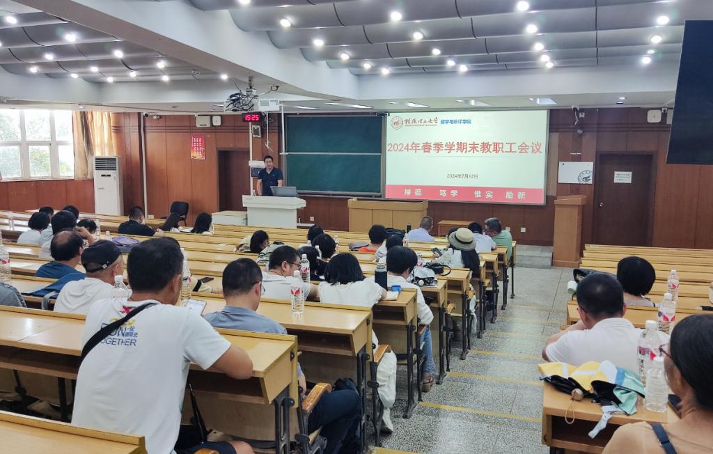 7月12日下午,我院在屏风校区9401召开2024年春季学期末教职工会议,学院全体教职工参加了会议,会议由学院党委书记江玲主持。