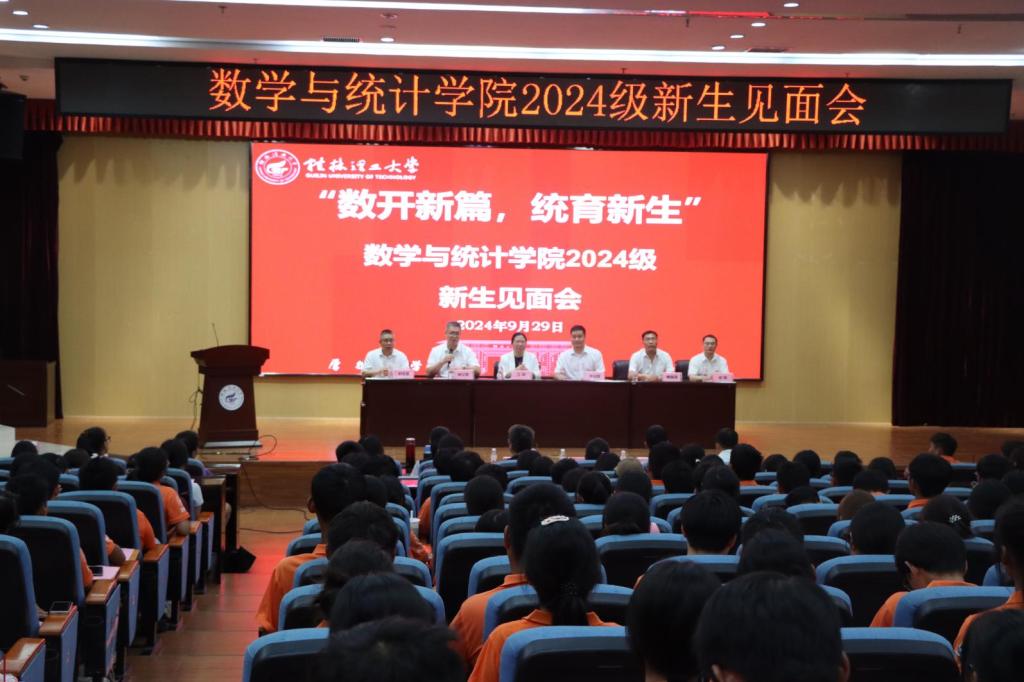 金秋九月,丹桂飘香,为推动学院2024级新生融入数统大家庭。9月29日,数学与统计学院召开“数开新篇,统育新生”——2024级新生见面会。学院党委书记江铃、院长蒋远营、学院党委副书记钟立军、副院长封全喜、唐国强、院长助理徐峰出席本次会议,学院各专业教研室主任、新生班主任、学院辅导员、2024级研究生及2024级本科生参加本次见面会。会议由学院党委副书记钟立军主持。