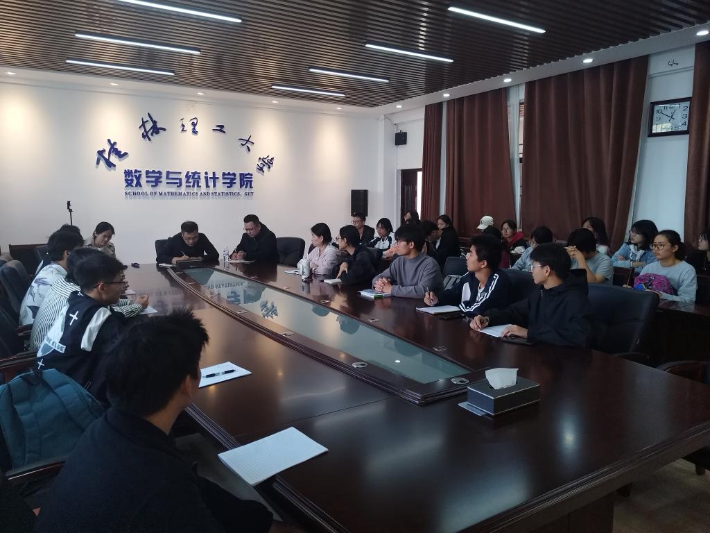 11月19日,为积极落实学校2024年秋季学期期中教学检查要求,进一步提升高等数学课程教学质量,学院在雁山8201办公室召开了高等数学课程学生代表座谈会。会议由学院副院长唐国强主持,教学督导曾翔、基础数学教研室副主任刘淑芹一同参加。