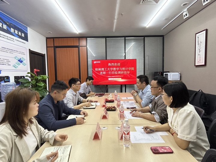 为深化产教融合,推动统计学专业人才培养与行业需求精准对接,3月28日,桂林理工大学数学与统计学院院长蒋远营教授率队前往广西数道云数据科技集团有限公司(以下简称“数道集团”)开展专题调研并看望了在该公司工作的校友,学院副院长王彬、应用统计专业教研室主任丁少玲及院长助理徐锋共同参与。
