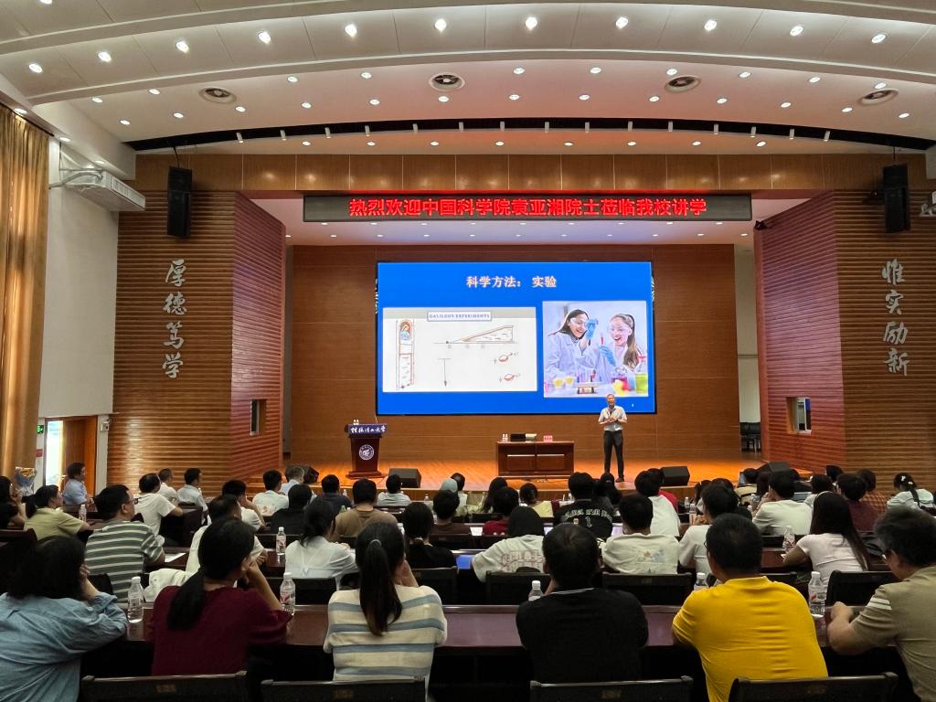 7月19日下午,著名数学家、中国科学院院士、全国政协常委、中国科协副主席、中国科学院数学与系统科学研究院研究员袁亚湘应邀莅临我校讲学,在屏风校区图书馆报告厅为我校200余名师生作了题为“计算——第三种科学方法”的精彩学术报告。王磊副校长热情接待了袁院士,并代表学校对其到来表示诚挚欢迎与衷心感谢。