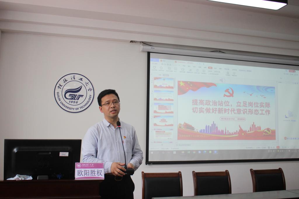 2021年4月22日下午,学院党委组织全体教职工开展意识形态专题理论学习,学院领导班子全体成员以及全体教职工参加学习。专题学习由学院党委书记欧阳胜权主讲。