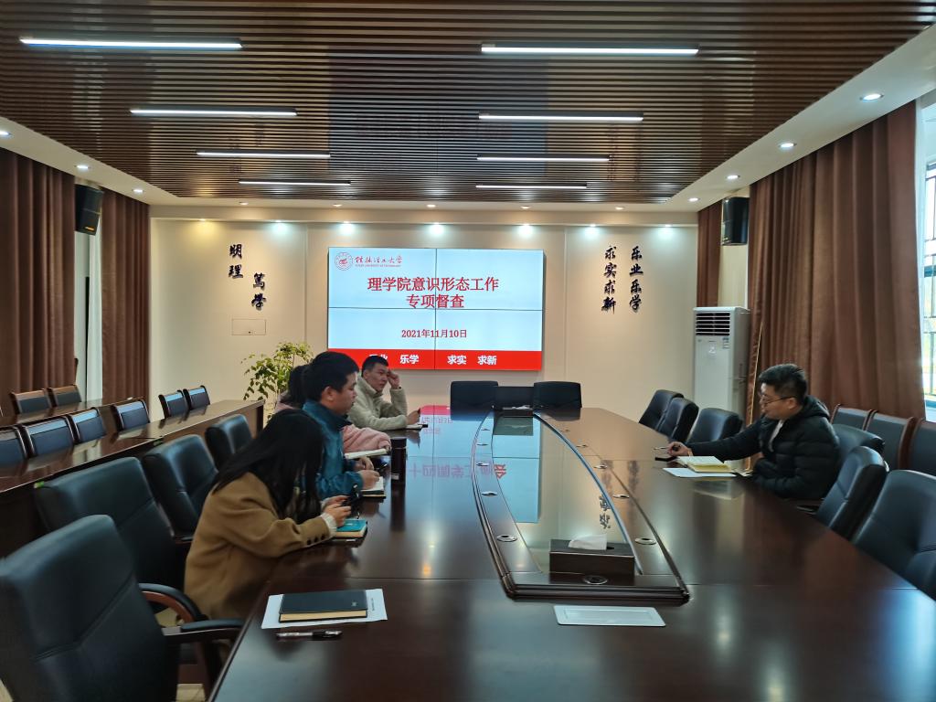 为全面落实意识形态工作责任制,加强意识形态工作管理,2021年11月10日学院党委副书记钟立军、各年级辅导员就学院新媒体意识形态工作、民族宗教工作进行专项督查。