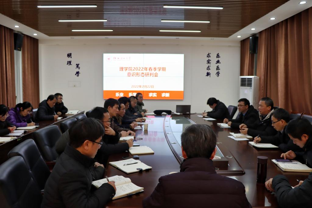 为进一步做好2022年春季学期意识形态工作,我院在雁山校区08201会议召开2022年春季学期意识形态研判会,学院全体党政领导班子、各教研室负责人、全体辅导员参加会议,会议由学院党委书记欧阳胜权主持。