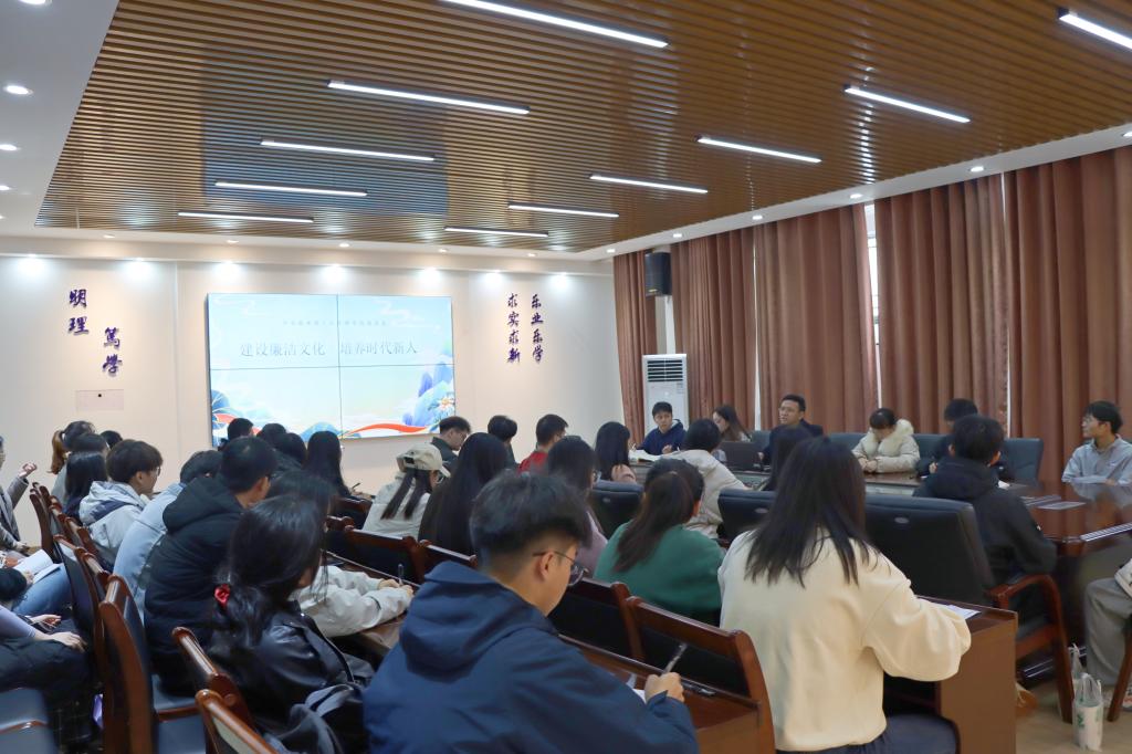 为进一步提高学生党员的反腐倡廉意识,深化党风廉政建设,增强学生党员遵纪守法意识、敬畏意识,营造风清气正的环境,2023年11月15日,理学院研究生第一党支部在08201会议室开展了“建设廉洁文化,培养时代新人”的廉政专题党课。本次活动由理学院党委书记欧阳胜权主讲,研究生第一党支部全体党员参加会议。