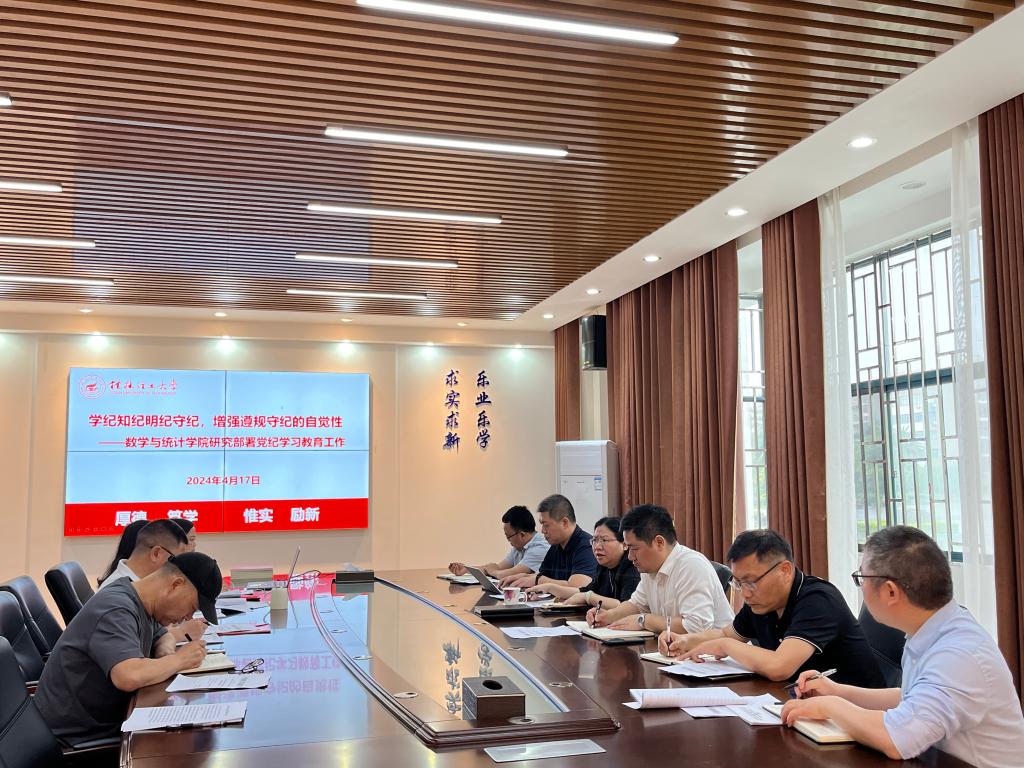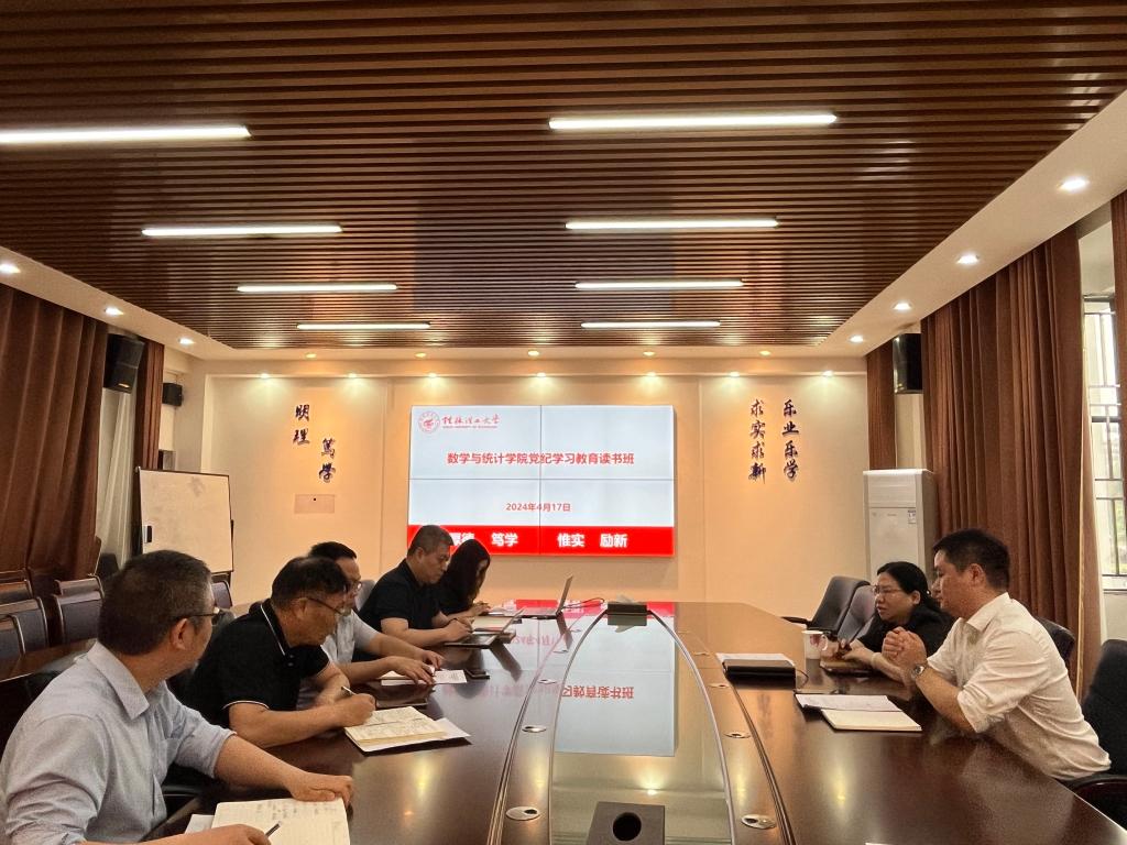 4月17日上午,为深入学习贯彻习近平总书记关于党纪学习教育的重要讲话和重要指示精神,落实学校在关于党纪学习教育工作部署的会议精神,数学与统计学院于雁山08201会议室召开党纪学习教育工作部署会暨读书班开班仪式,传达学校党纪学习教育会议精神,并部署学院党纪学习教育进行工作相关要求。学院党委主要负责人主持会议并作动员讲话,学院全体党政领导班子成员、党委委员、组织员、师生党支部书记以及学院党政办主任参加会议。