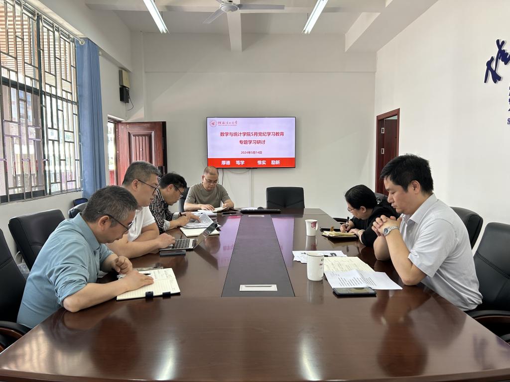 5月14日,学院在雁山校区08203会议室召开党纪学习教育专题学习暨理论学习中心组集中专题学习会,集体学习《中国共产党纪律处分条例》,全体领导班子原原本本学习新修订的《中国共产党纪律处分条例》,并就“政治纪律”“组织纪律”开展交流研讨。学院党政领导班子成员、办公室主任、学工组长参加会议。学院党委书记江玲主持会议。