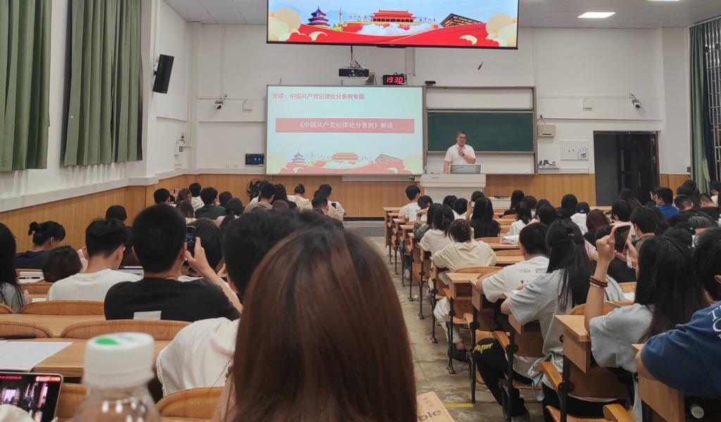 为认真贯彻落实党中央党纪学习教育的决策部署,进一步学深悟透习近平总书记关于党的自我革命的重要思想,扎实开展党纪学习教育,5月16日,数学与统计学院、物理与电子信息工程学院、环境科学与工程学院、商学院、艺术学院联合分党校2024年春季学期党员发展对象培训班于06206开展专题党课,此次党课主题为:解读《中国共产党纪律处分条例》,数学与统计学院党委副书记、纪委书记钟立军主讲。