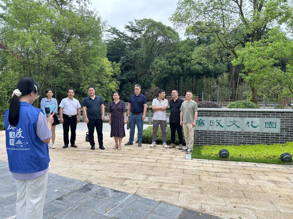 讲解员向大家详细介绍了廉洁文化园的建设背景、功能定位以及所承载的廉政文化内涵。在讲解员的引导下,大家陆续参观了礼仪广场、观演广场、文化橱窗、莲池点题、花木育廉等主题场景以及党纪学习教育专题内容。