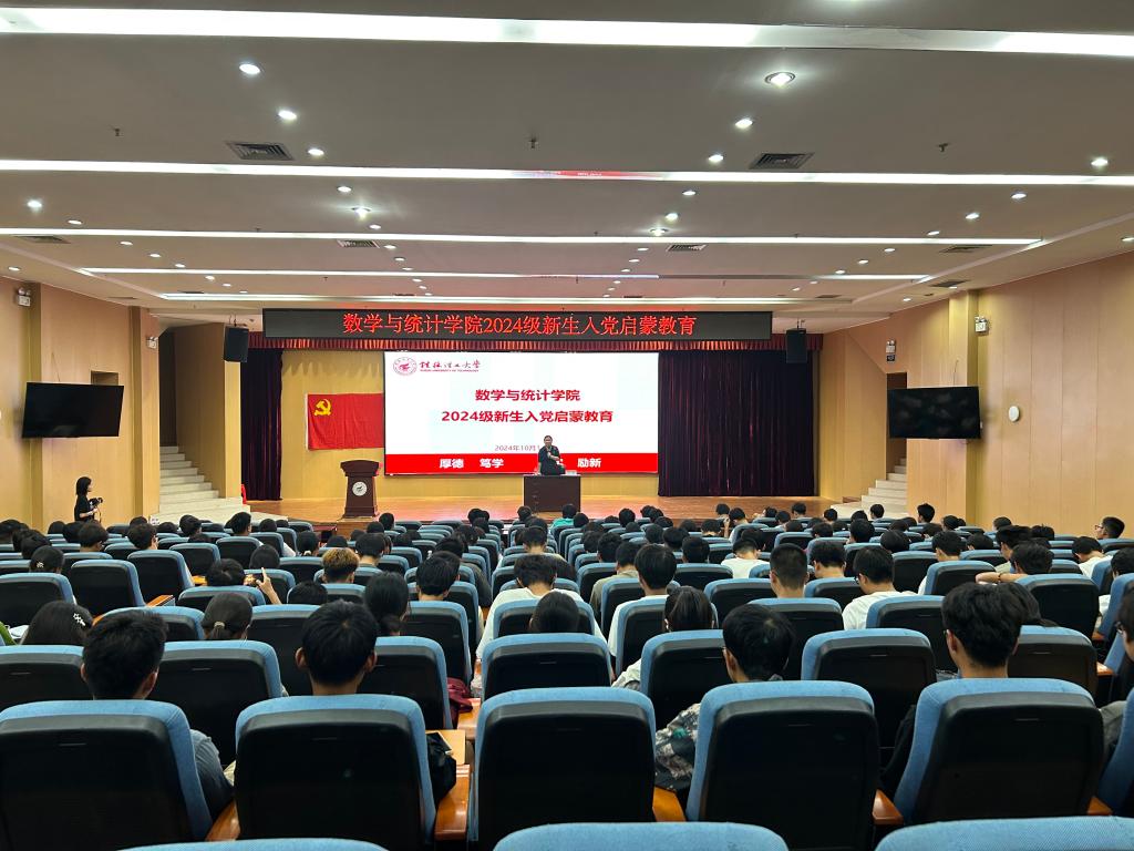 为切实加强2024级新生理想信念教育,进一步加深新生对党的认识,帮助新生学习党的基本知识、提高理论素养,切实抓好新生入党启蒙教育关键期,引导新生积极向党组织靠拢。2024年10月14日下午,数学与统计学院在雁山校区图书馆报告厅举办了2024级新生入党启蒙教育。培训会由学院党委书记江玲主讲,全体2024级新生参加。