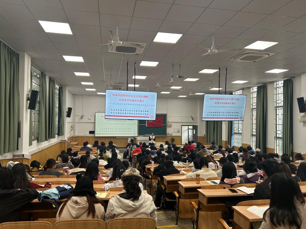 在专题党课中,江玲书记围绕中国特色社会主义进入新时代、当今世界经历新变局、中华民族伟大复兴面临新考验以及科学社会主义焕发新生机等四大维度,以通俗易懂的方式,为学生们全面而深刻地剖析了习近平新时代中国特色社会主义思想形成的历史条件和时代背景。