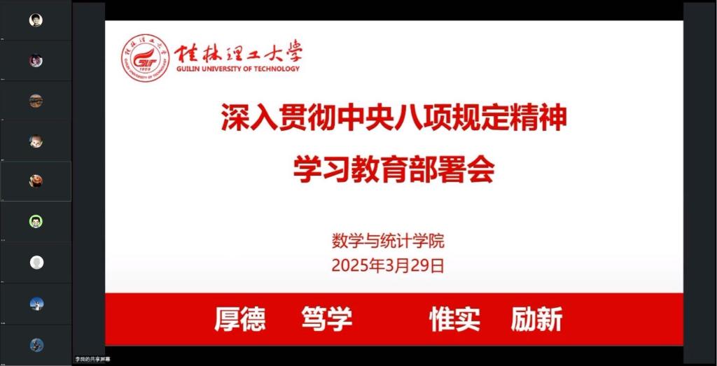 3月29日,学院通过腾讯会议线上召开深入贯彻中央八项规定精神学习教育部署会,深入贯彻落实党中央、自治区党委和学校党委关于开展学习教育的各项部署要求,部署学院学习教育工作。学院党委书记江玲主持会议并传达学校部署会议精神,学院党委领导班子、基层党支部书记、教研室主任参加会议。