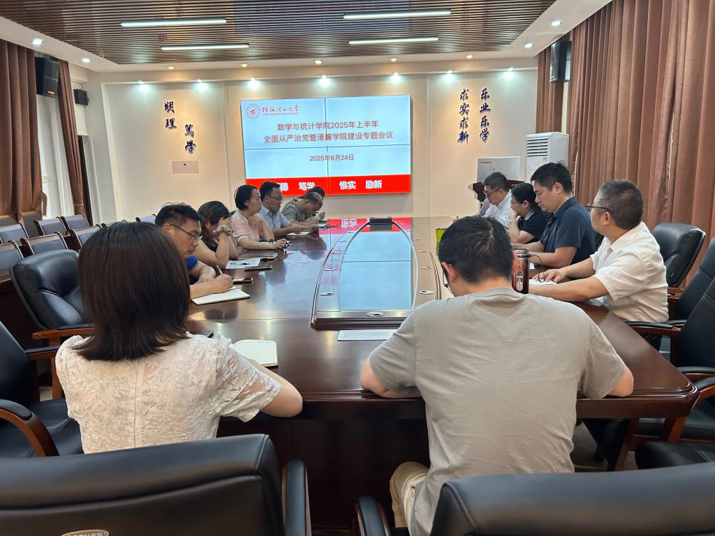 为落实学校2025年全面从严治党工作部署,6月24日,数学与统计学院召开2025年上半年全面从严治党暨清廉学院建设工作专题会议。学院领导班子、各党支部书记及系室负责人参加会议,学院党委书记江玲主持会议并讲话。
