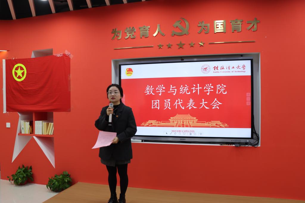 为选举产生数学与统计学院出席共青团桂林理工大学第三次代表大会代表,数学与统计学院于12月17日在红色先锋“一站式”学生社区党员服务站召开团员代表大会。会议由学院团委副书记彭娇娇老师主持,各团支部代表参加了本次会议。