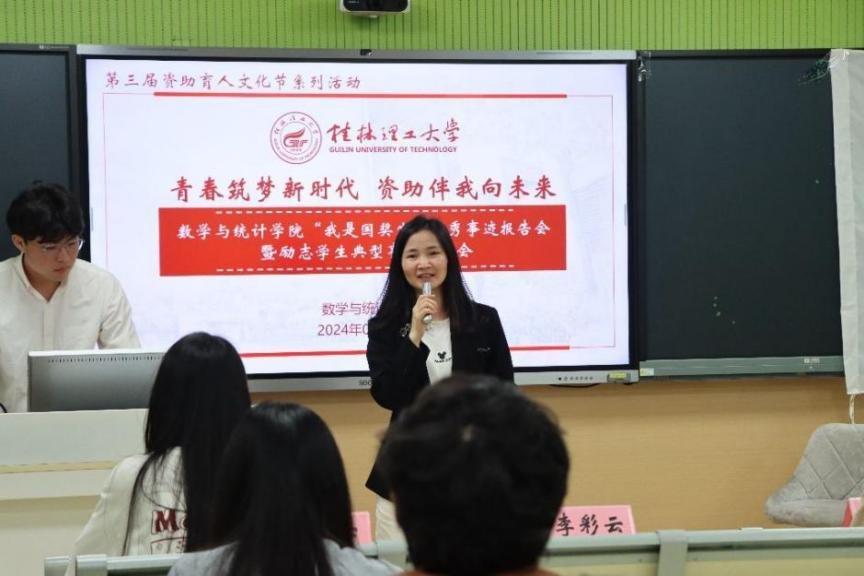 为了弘扬自强不息的民族精神,充分展现我院学生直面生活困难、勇于担当、奋勇争先的风采,激励广大受助学生奋发自强、立志成才、诚实守信、感恩奉献。2024年4月23日,数学与统计学院扬帆社于06401教室开展了2024年凌雁工程——“我是国奖生”优秀事迹报告会暨励志学生典型事迹宣讲会。学院扬帆社指导老师及受助学生参加本次活动。