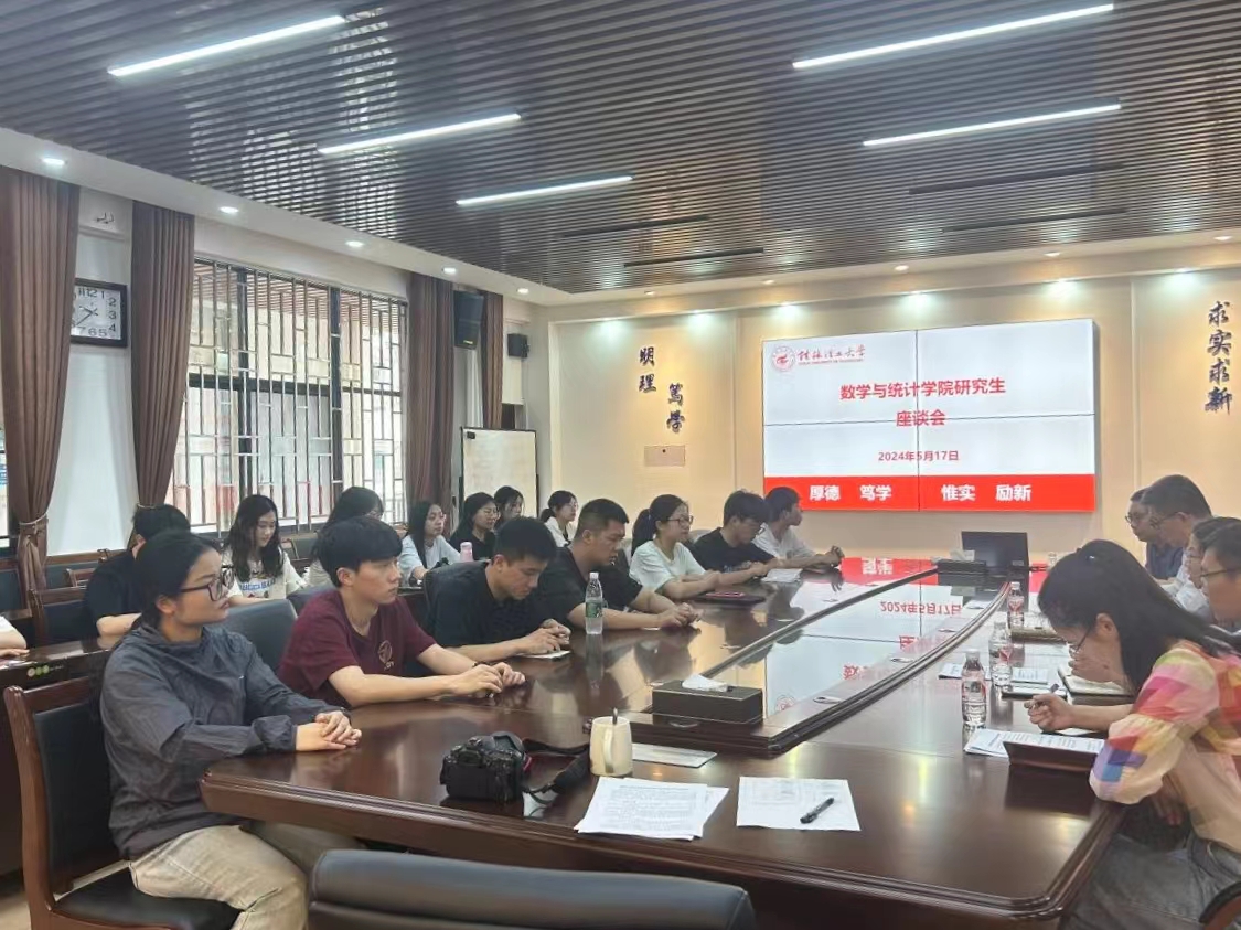 为及时了解学院研究生们的学习与思想动态,5月17日上午,数学与统计学院于08201会议室召开研究生座谈会。学院党委书记江玲、党委副书记钟立军、分管研究生工作副院长封全喜、副院长唐国强和相关工作人员出席了会议,学院17名研究生参加了本次座谈。