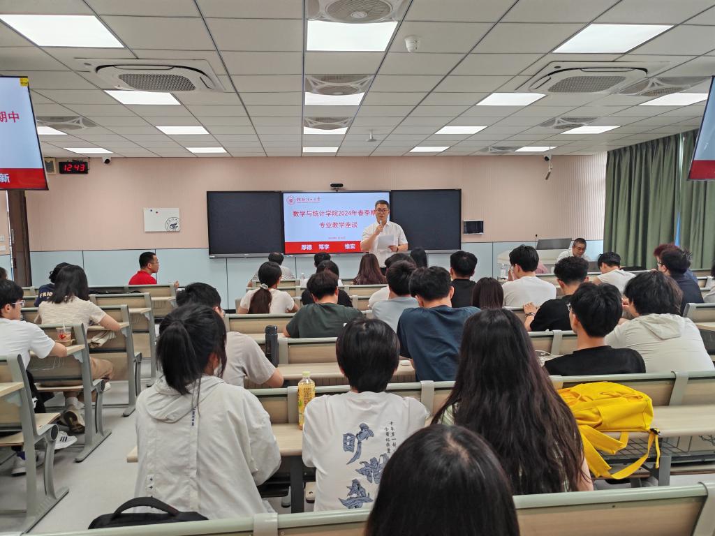 为更全面了解学生学习生活情况,广泛听取学生的意见与建议,切实提升学院办学水平,助力学生成长成才,学院于5月16日组织各年级学生开展了2024春季学期期中教学检查座谈会。会议由学院副院长封全喜主持,学院党委副书记钟立军、副院长唐国强、统计学教研室主任丁少玲、信息与计算科学教研室主任谢海、各年级辅导员及班级学生代表参加了本次座谈会。