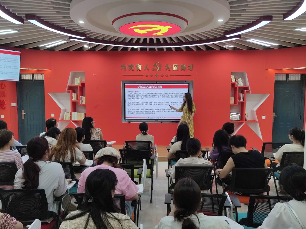 夏晴老师着重强调了党员组织关系的重要性,要求全体毕业生党员要提高思想认识,高度重视,认真对待党员组织关系转接工作,尽快落实好党组织关系的接收单位,按时依规办理好党组织关系转接工作,坚决杜绝出现“口袋党员”、失联党员等现象。