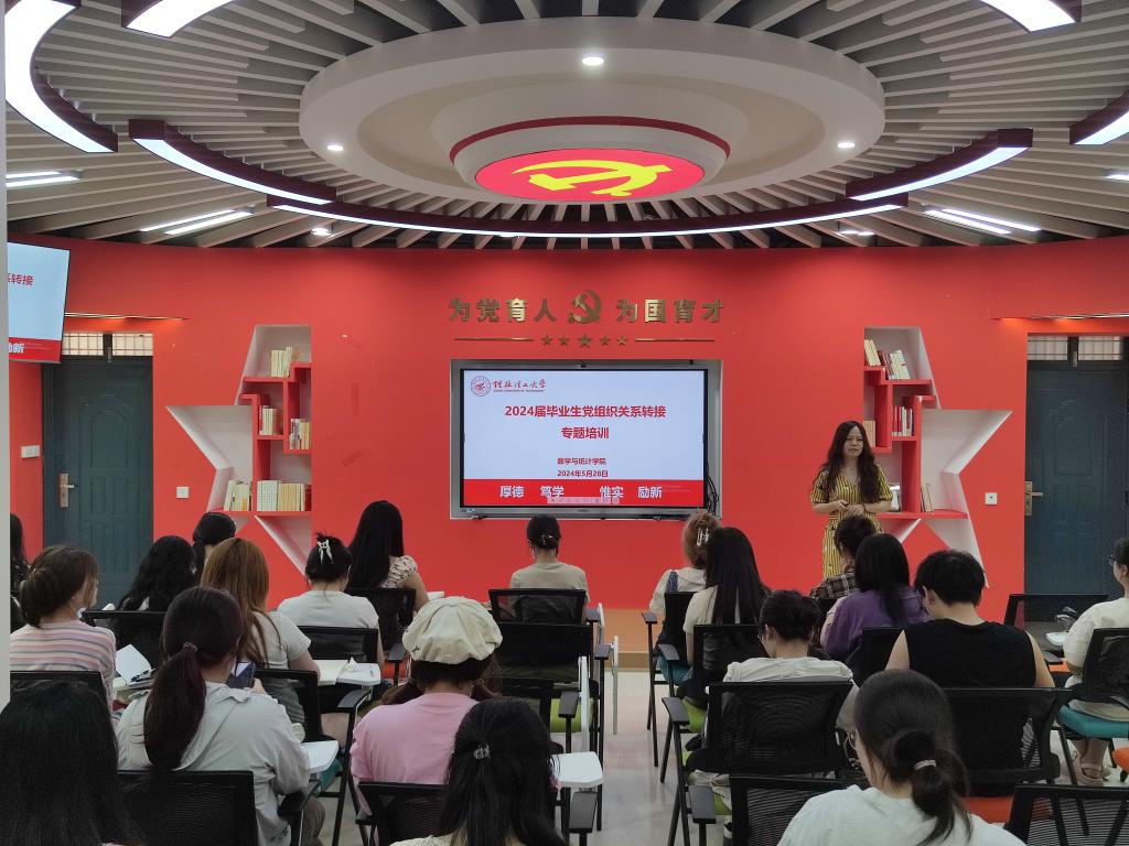 为帮助2024届毕业生党员明确党组织关系转接的重要性,顺利完成党组织关系转接,根据学校《关于做好2024届毕业生党员组织关系转接工作的通知》要求,5月28日,学院在雁山校区嘉园思政大讲堂召开2024届毕业党员党组织关系转接培训会,各党支部支委、全体毕业生党员参加培训会,由学院党建辅导员、2020级辅导员夏晴主讲。