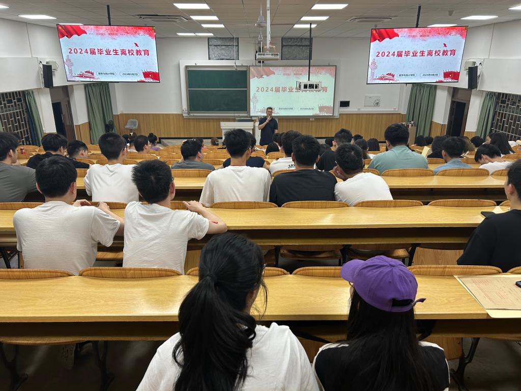 学院党委副书记钟立军围绕“理想信念、诚信感恩、心理健康、安全教育”等方面开展教育,引导同学们在毕业离校期间积极配合学校各项安排,有序完成离校手续办理等相关工作。切实促使毕业生明晰未来奋斗目标、坚定自身理想信念、增强对母校的认同感和归属感,同时也营造了良好的毕业氛围,为推动毕业生文明离校工作的顺利展开奠定坚实基础。