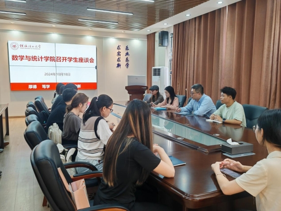 为深入了解学生的日常学习、科研及生活状况,广泛吸纳学生对学院发展的意见与建议,切实做好教育、管理和服务工作,全力落实学校人才培养质量提升计划,数学与统计学院于2024年10月18日在雁山校区明理楼08201召开学生座谈会。院党委副书记钟立军、团委副书记彭娇娇以及本硕学生代表30余人参加了此次座谈会,会议由彭娇娇老师主持。