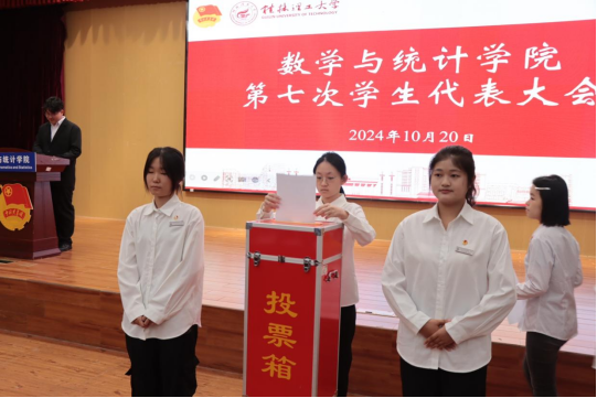本次大会还集体审议通过了《桂林理工大学数学与统计学院第六届学生会工作报告》《关于〈桂林理工大学数学与统计学院学生会章程(修正案草案)〉的起草说明》《桂林理工大学数学与统计学院第六次学生代表大会提案工作委员会关于提案工作的报告》。全体代表以无记名投票、差额选举的方式,选举产生了学院第七届学生会主席团成员和第七届学生会常任代表。