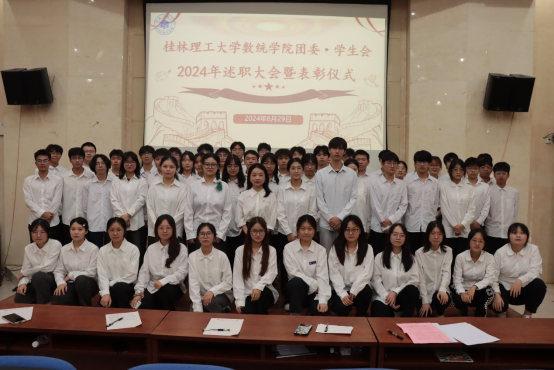 数学与统计学院团委、学生会是在数学与统计学院党委领导以及学院团委指导下,以“全心全意服务同学”为宗旨的学生组织。为确保数学与统计学院团委、学生会工作的连续性,提升学生干部的工作热情与质量,充分发挥其自主职能,2024 年 6 月 29 日晚上,数学与统计学院团委、学生会述职大会在雁山校区萃华楼报告厅隆重举行。本次会议邀请了数学与统计学院团委副书记彭娇娇老师出席,全体团委、学生会成员参加了此次会议。