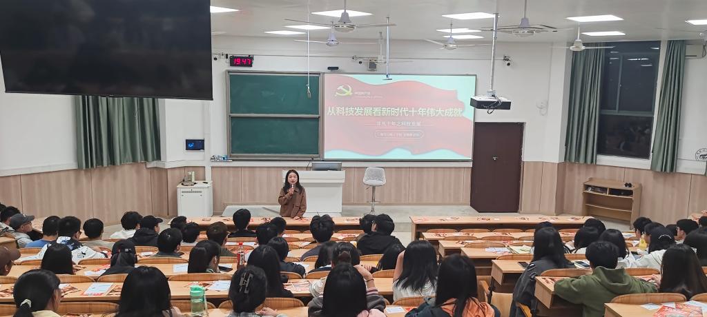 为深入贯彻党的二十大精神和二十届三中全会精神,进一步强化对广大团员青年的政治引领,不断提升其“四个意识”、坚定“四个自信”、做到“两个维护”,充分激发新时代中国青年在强国建设、民族复兴伟业中的挺膺担当精神,数学与统计学院于10月20日在07119教室开展了“从科技发展看新时代十年伟大成就”主题团课。此次团课由学院团委副书记彭娇娇老师主讲,全体2023级团支部成员积极参与,共同学习。