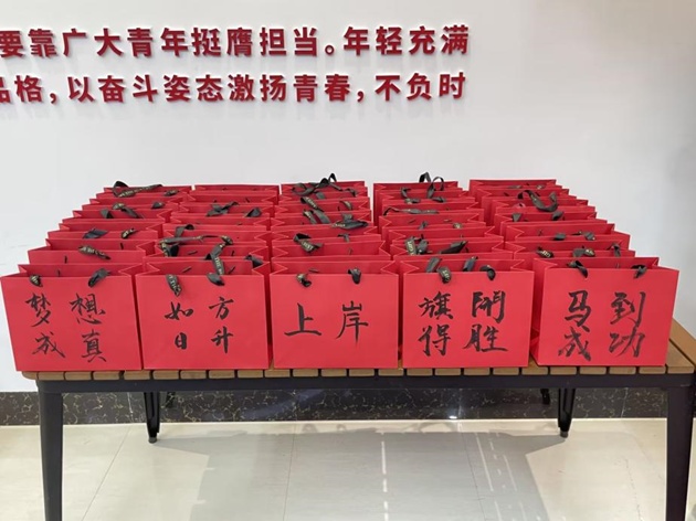 学院还为全体2025年考生们精心准备了 “考研礼包” 。礼包别具深意,柿饼承载 “柿柿如意” 的美好祝愿,“士力架”助力同学们克服疲惫、勇往直前,旺旺雪饼与棒棒糖预示着未来的甜蜜与顺遂,期望大家考研之路 “旺” 运相伴。学弟学妹们书写的祝福明信片情真意切,字里行间的鼓励让考研学子倍感温暖,增强了他们迈向考场的勇气与决心。