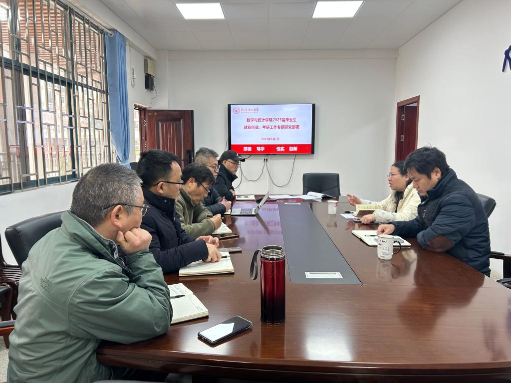 为做好2025届毕业生就业考研工作,实现毕业生高质量就业,1月7日,数学与统计学院在雁山校区08203会议室召开2025届毕业生就业考研工作会议。学院全体党政领导班子、党政办主任、学工组长参加本次会议,会议由学院党委书记江玲主持。