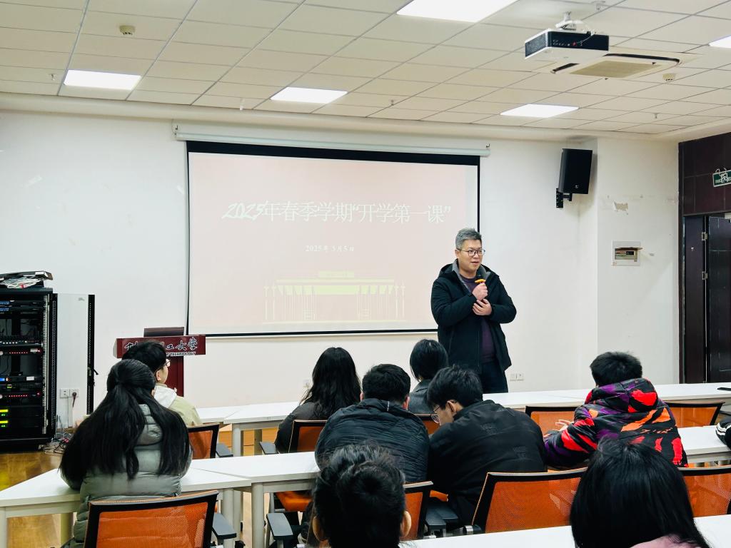 2025年3月5日,数学与统计学院研究生“开学第一课”在15205教室顺利举行。学院党委副书记钟立军、分管研究生工作副院长封全喜、研究生辅导员韦巍以及全体在校研究生参加了此次活动。本次活动围绕安全教育、学术规范和社会热点展开,为新学期的学习与生活奠定了坚实基础。