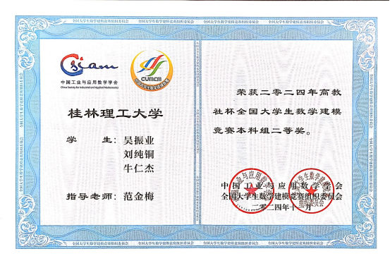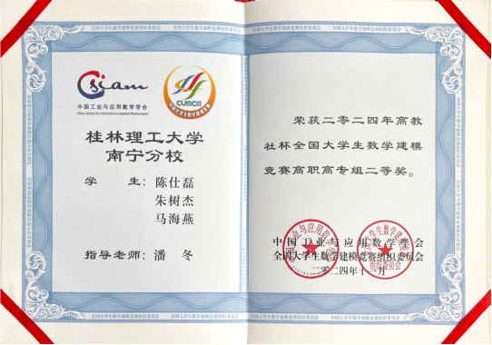 全国大学生数学建模竞赛广西赛区2024年工作总结会议暨颁奖仪式近日成功举行,我校数学与统计学院和南宁分校等学院的200多名学生参加了此次竞赛,并取得了优秀的成绩。最终,我校共获省部级以上奖项55项,其中国家二等奖6项,省部级一等奖10项、二等奖13项、三等奖26项。范金梅、黄聪、封全喜、潘冬四位老师荣获“数学建模广西赛区优秀指导老师”荣誉称号。