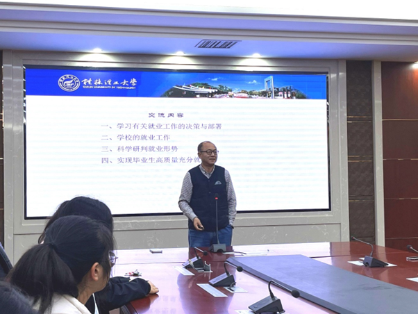 为进一步促进毕业生高质量充分就业,落实学校2025届毕业生就业“暖冬行动”。学院于12月6日下午,特别邀请学校学生工作部(处)副部(处)长、大学生就业与职业规划指导中心主任迟国东在雁山校区15201教室为毕业生举办了一场就业指导会。指导会由学院党委副书记钟立军主持,学院2025届毕业生参与本次会议。